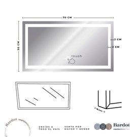 ESPEJO ESMERILADO TOUCH RECTANGULAR LED 70x50 Cm