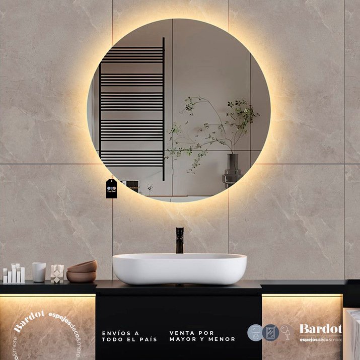 Luz Cálida 5050k. Luz Fría 3000-3500k. Potencia 19w. Borde Pulido. Espejo 4mm de Espesor. Transformador Incorporado, se conecta directo a 220w. Se enciende y apaga desde la tecla de tu baño, dormitorio etc. Diámetro: 100m.