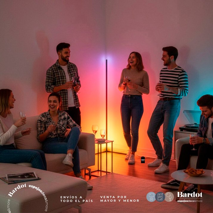 Incluye: Lámpara de pie de Aluminio + Fuente de alimentación + Control remoto de larga distancia. Medidas: 1.5mts de alto x 35cm de base Tecnología: Pixel LED 20W. Se enchufa Directo a 220V Fuente incluida.